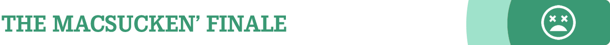 Somehow Jimmy Da Kid is our season finale MacSucken' holder. The cruel path of the MacSucken’ ended up back in his arms for another offseason. The MacSucken does not change hands in the post season so it's Jimmy's until he starts off with it again in week 1 of next season.